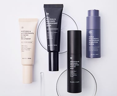 Allies of Skin(アリーオブスキン)は、肌の自己再生能力である、抗酸化、プロバイオティクス(常在菌)、が上手に機能するように作られた多機能スキンケアコレクションです。 受賞歴を持つアリーオブスキン製品は、クリーン、クルエルティーフリー製品で、少ないスキンケアステップで最大限の効果を引き出します。レチノール、ビタミンC、酸、抗酸化物質などの臨床的に証明された成分を使い、肌を修復、再生、トレーニングして最高のパフォーマンスを発揮する、クリーンで生体適合性のある濃縮された処方を採用しています。